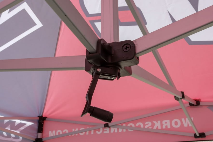 - Interior lattice (adjusts top center) and expands the tent center height.
